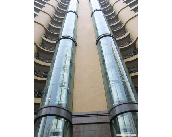 观光电梯:井道和轿厢壁至少有同一侧透明,乘客可观看轿厢外景物的电梯。主要安装于宾馆、商场、高层办公楼场合,有一面或几面的井道壁和轿厢壁同侧是透明材料,乘客在乘坐电梯时,可以观看轿厢外的景物。设计简约美观,此类电梯在土建上没有特别要求,对顶层高度几乎无限制,在高层建筑的复式楼,复式公寓,均可安装,且安装时间短。服务于规定楼层的固定式升降设备。主要安装于宾馆、商场、高层办公楼场合。
